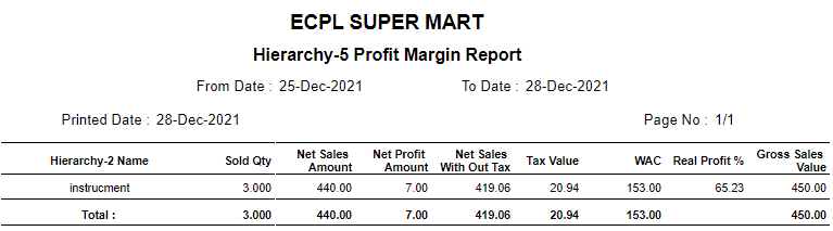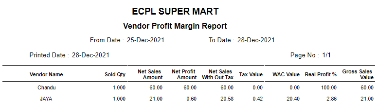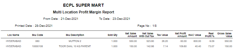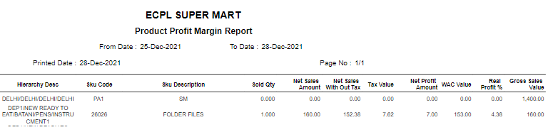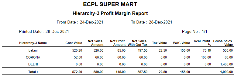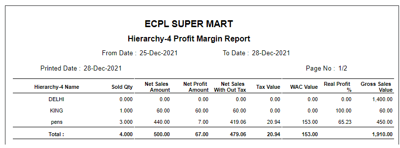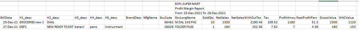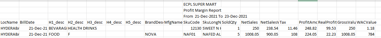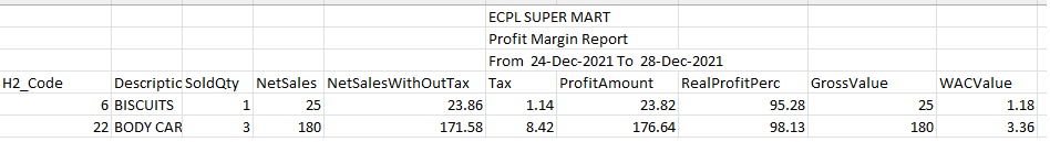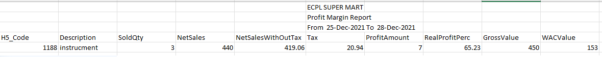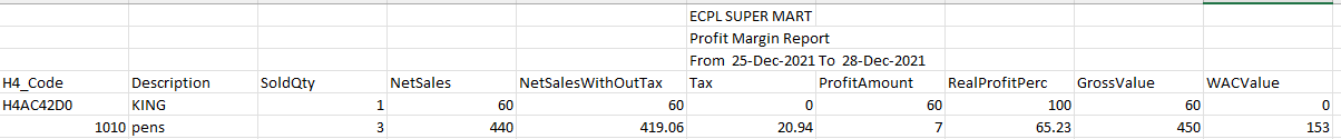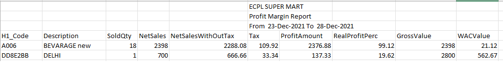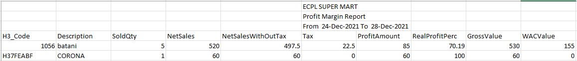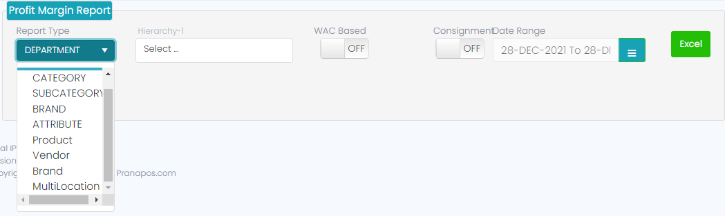 To get the Profit Margin report go to menu bar, select ‘Profit Margin’ which will be under Reports. In that Select Report type, WAC Based ON/OFF, Consignment ON/OFF, Date Range and then Generate Excel.