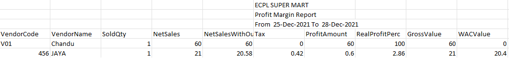 Vendor-> WAC ON-> Consignment OFF -> Generate Excel