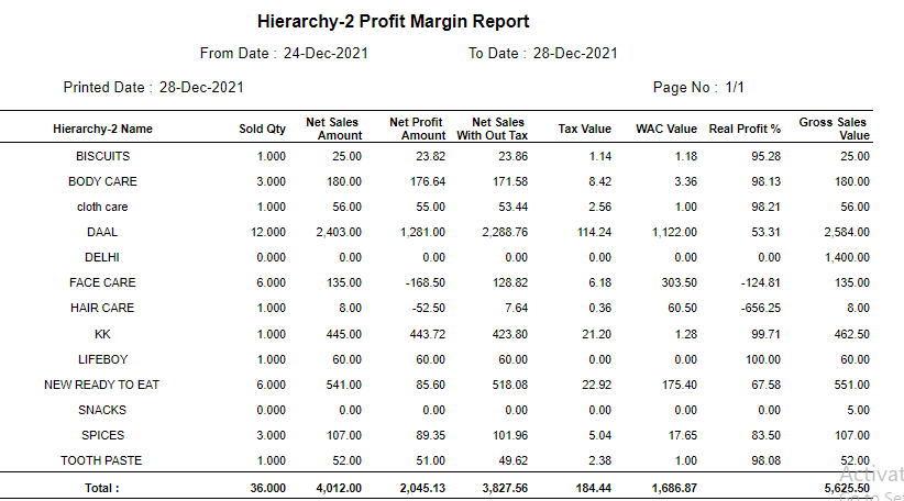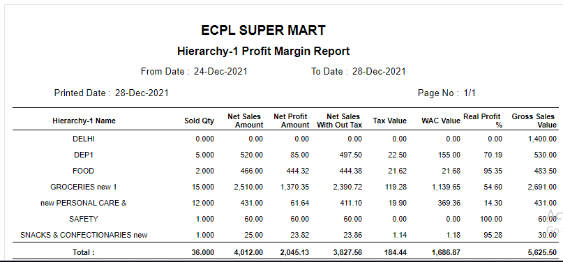 Hierarchy-1-> WAC ON-> Consignment OFF-> Generate Report
