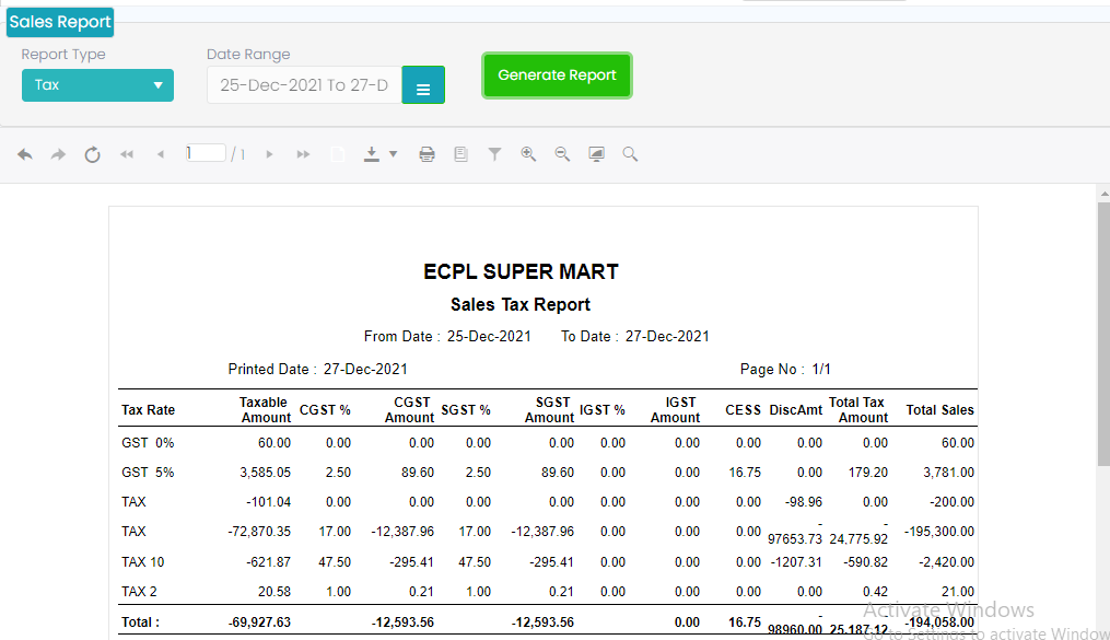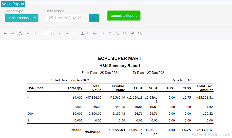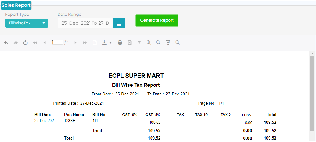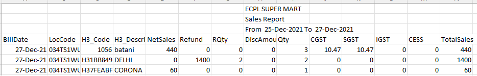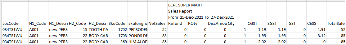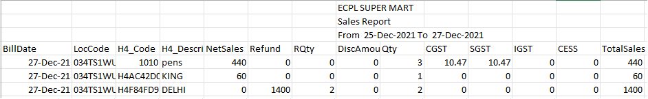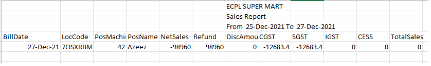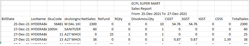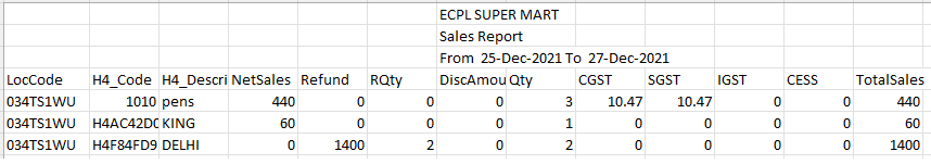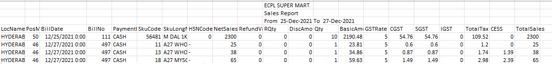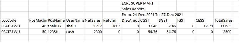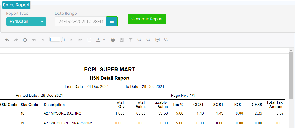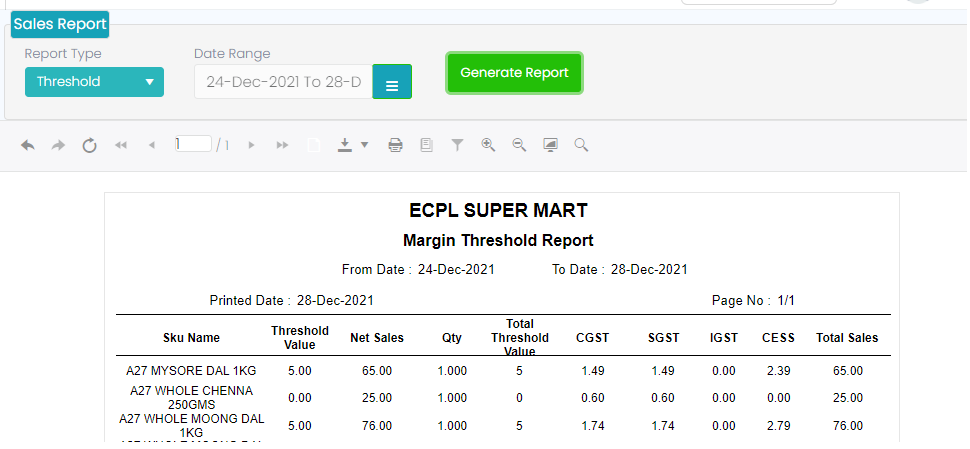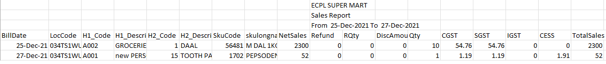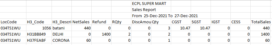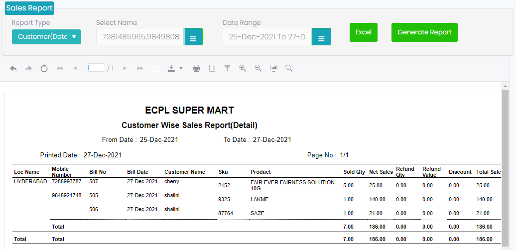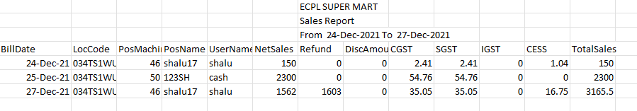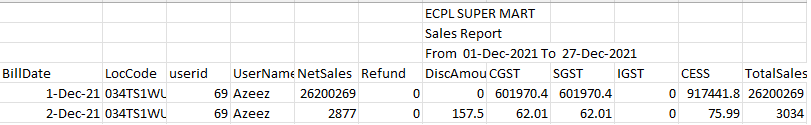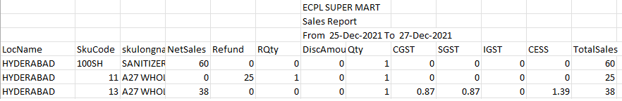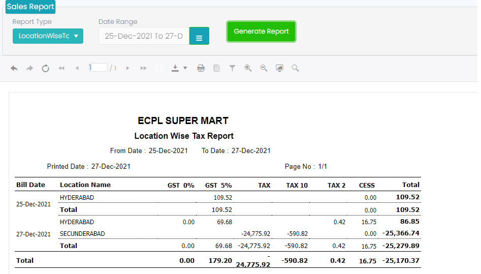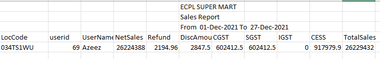 We can get the Sales Report based on the selected Report Type. We have seven Report Types i.e., User wise, Location Wise, POS wise, Product wise, Hierarchy-1(Department) wise, Hierarchy-2(Category) wise, Subcategory, Brand, Attribute, Vendor, Customer (Summary), Customer (Detail), Tax, Bill Wise Tax, Bill Wise Tax GSTR, GST Sales, Location wise Tax, HSN Summary, HSN Detail, Threshold, and Multi Location. After selecting the Report type select the respective individual, select the date range, Day wise ON/OFF and click on the ‘Generate Report’ or Excel button.
