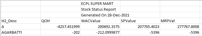 Below is the Format for the Stock Status Report.