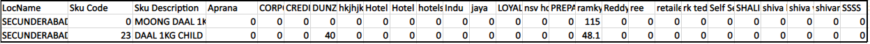 After Generated Report in Excel it will display the Column names as Loc Name, SKU Code, SKU Description, Cooperative, Hotels etc., all types of Customers will display as shown in below screenshot.