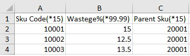 Below is the excel format for the Bulk Wastage upload. Column’s heading which are having * symbol is must to be filled.