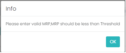 Threshold: Threshold is margin which is applied on the sales price & when the MRP goes below threshold % then it will show one popup message