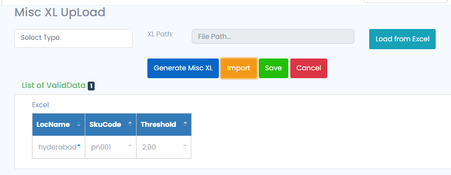 After entering the valid data in Misc Threshold XL module Load the excel and import it, if enter valid data is correct then save it then it will save the data as shown in below screenshot.