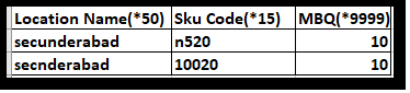 | Location Name (*50) | Sku Code (*15) | Case Qty (*99999.99) | Case Percentage (*99999.99) |